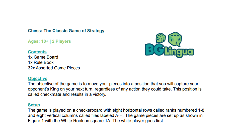 The insert in the game box allows customers to quickly and easily access the rules page for your game with all linked translations so that everyone can learn together!
